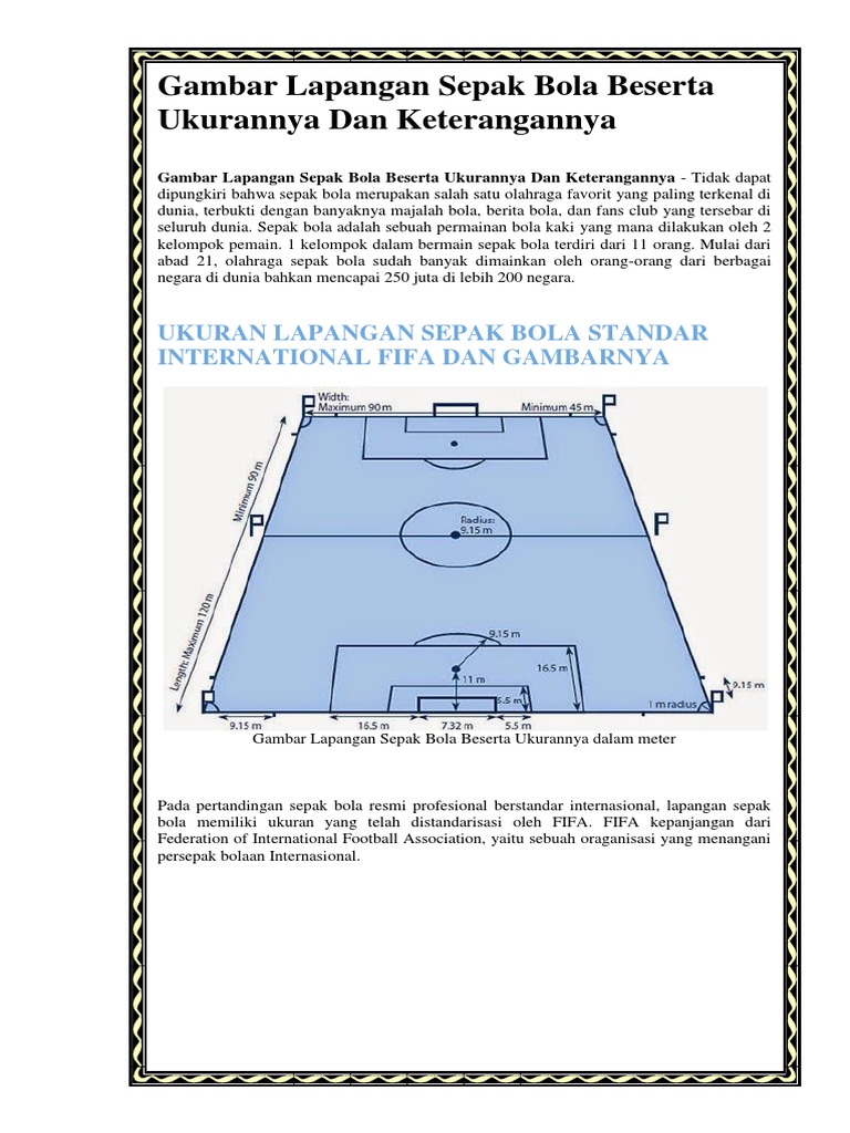 Gambar Dan Ukuran Lapangan Bola Kaki - Berbagai Ukuran from id-static.z-dn.net Ukuran lapangan sepak bola lengkap gambar dan keterangannya. Semua peraturan dan tata tertib yang ada didalam permainan sepakbola juga sudah diatur dan ditetapkan. Baca juga ukuran lapangan bola voli.